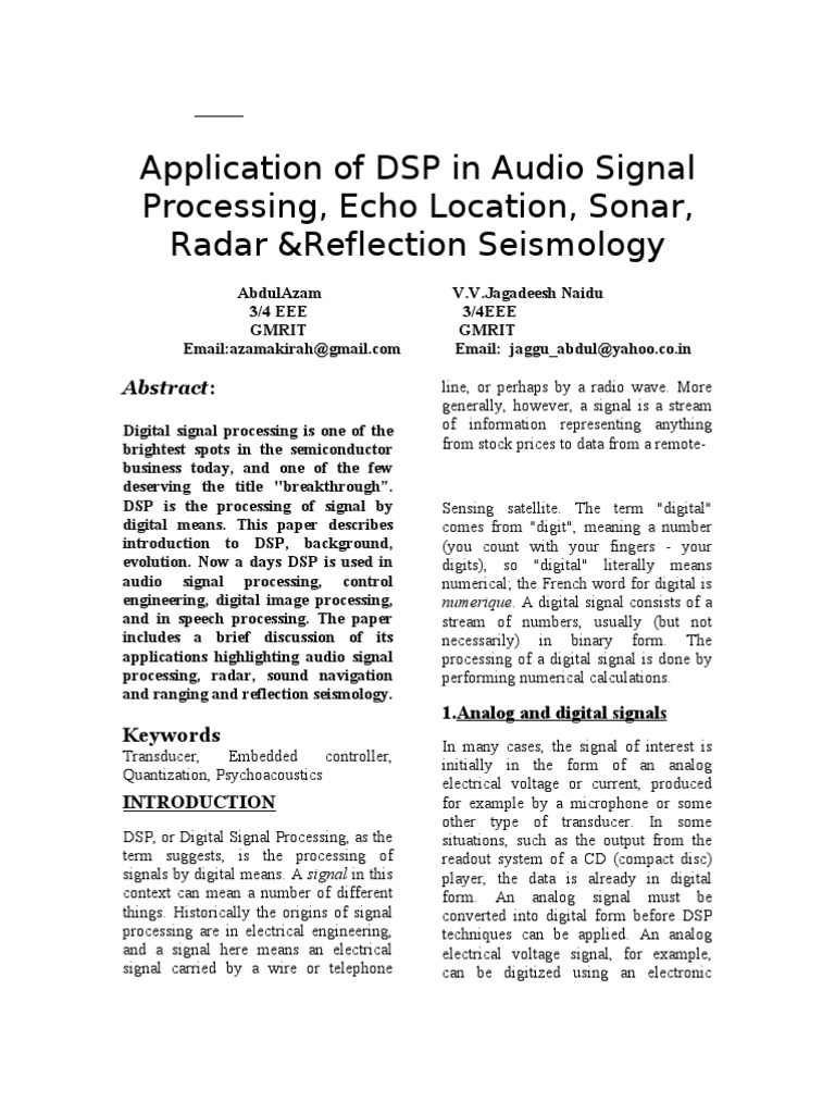 Pdf Digital Signal Processing For Speech Signals