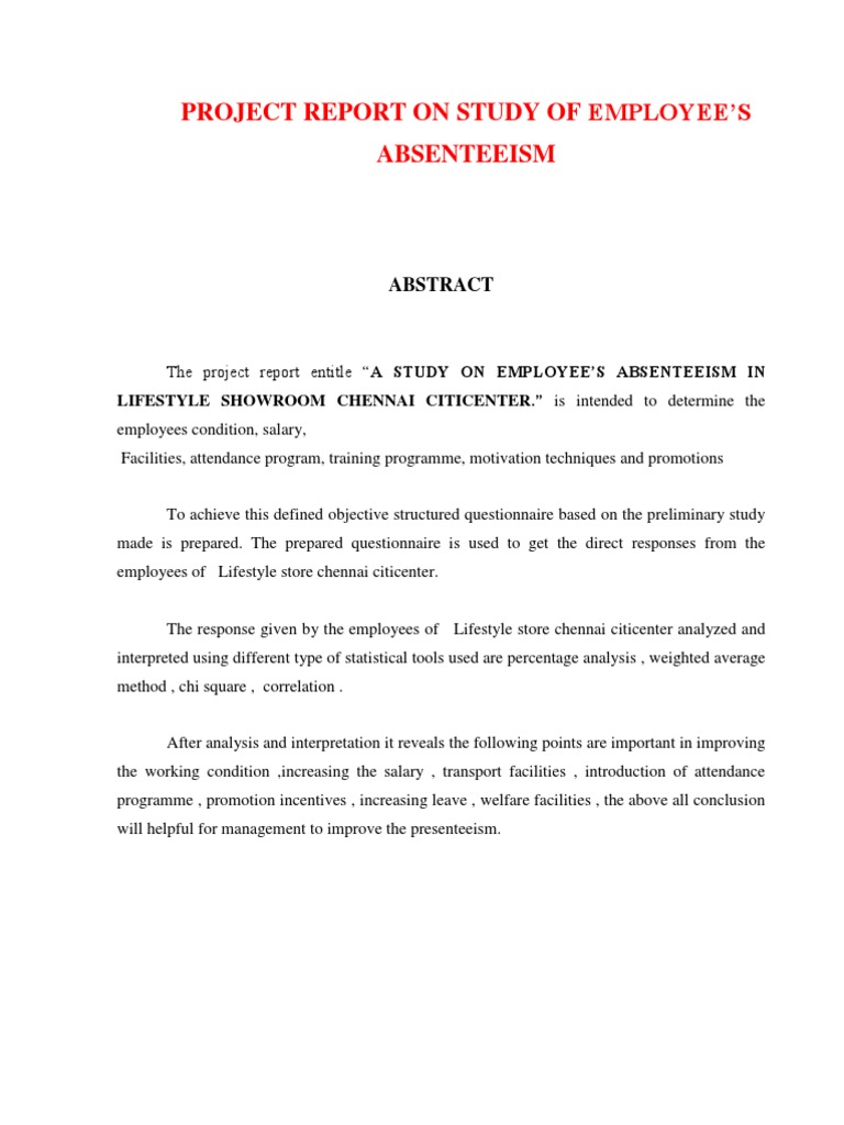 Pdf Report On Absenteeism In Barbados