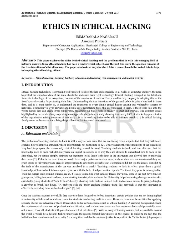 Pdf Ethical Hacking An Impact On Society Meenaakshi N