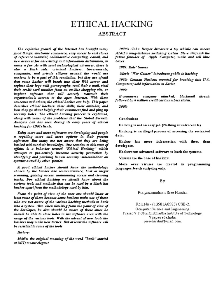 Pdf Ethical Hacking A High Level Information Security Study On