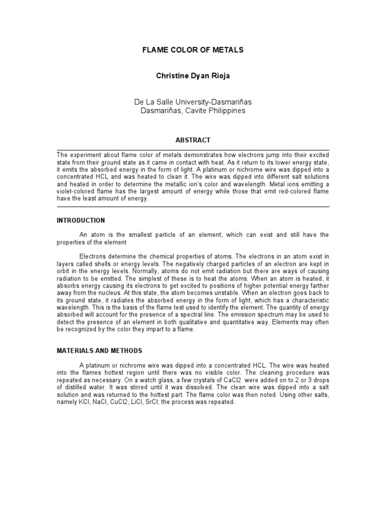 Flame Tests Lab Report Free Essay Example