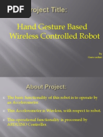 The output of the system is the different movements of the robot in the specified direction. Hand gesture controlled robot is a system consisting primarily a laptop and a robot. There is a dire need for vision based interface over speech recognition as it failed to mandate the robots because of modulation and varying frequency. A transmitting device is used in your hand which contains rf transmitter and accelero meter.