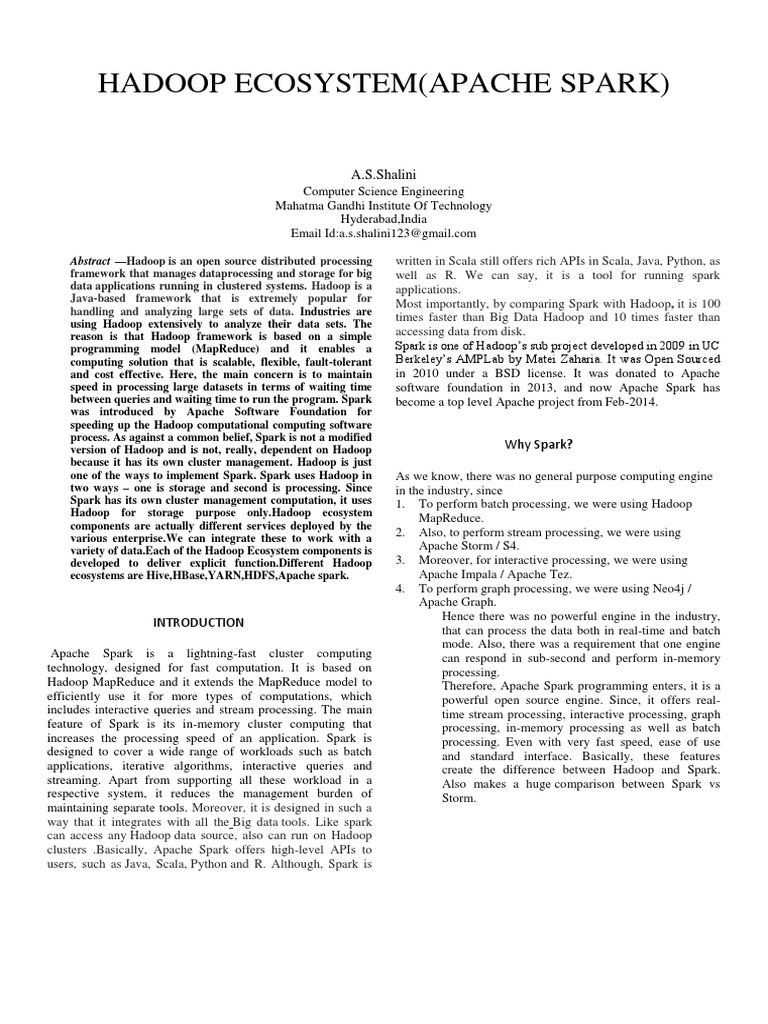 Tech Seminar Report Apache Spark Apache Hadoop