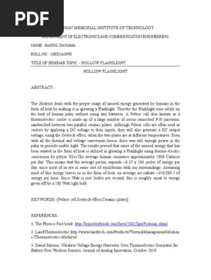 Pdf Body Heat Powered Flashlight Using Ltc3108