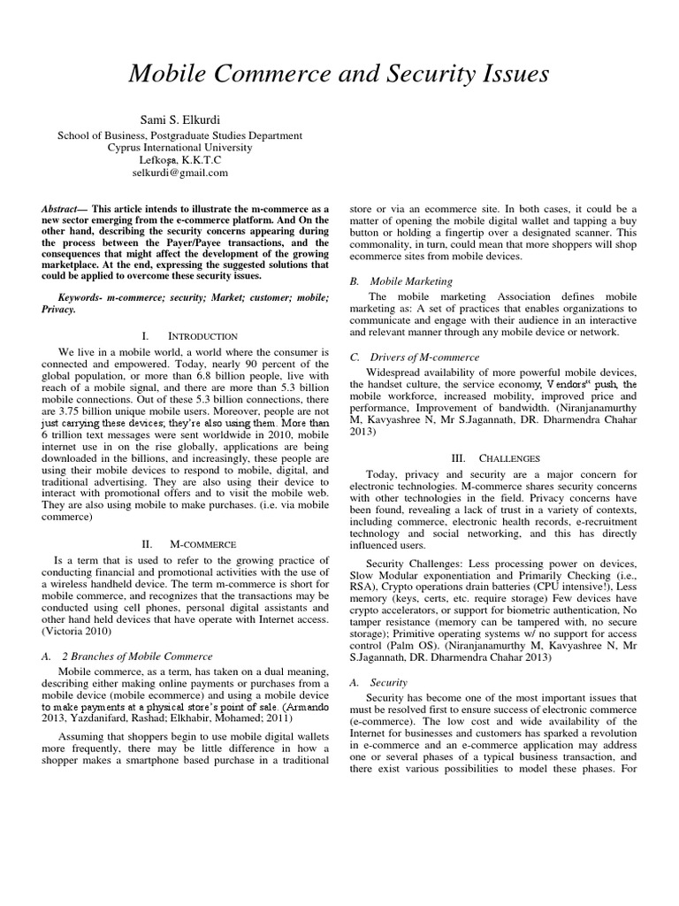 The Problems Regarding The Mobile Commerce Business Solution