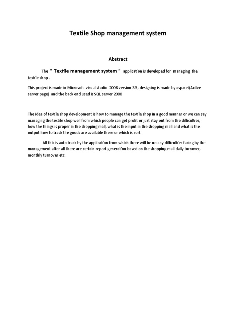 Textile Management System Pdf Document