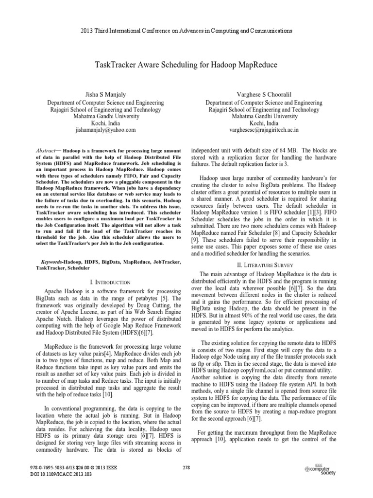 Tasktracker Aware Scheduling For Hadoop Mapreduce Apache Hadoop