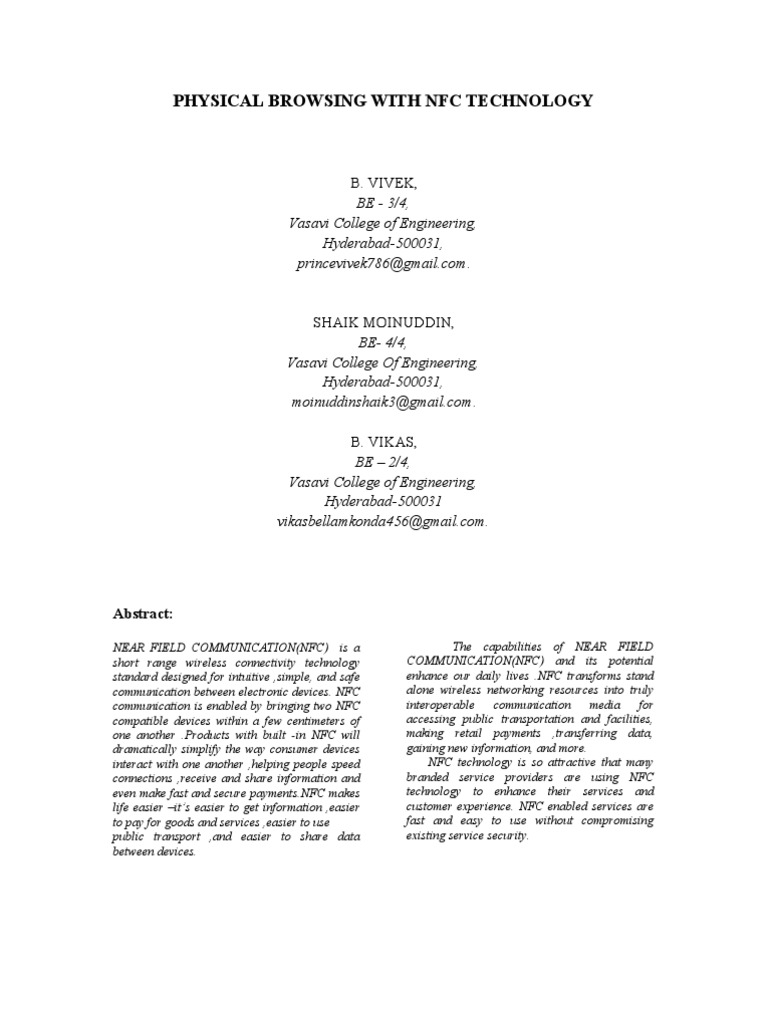 Physical Browsing With Nfc Technology Near Field Communication