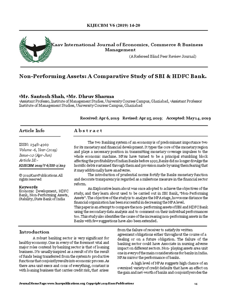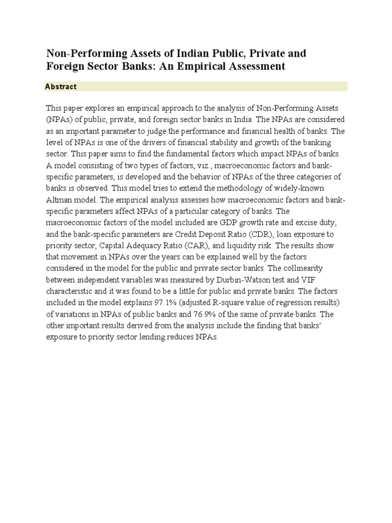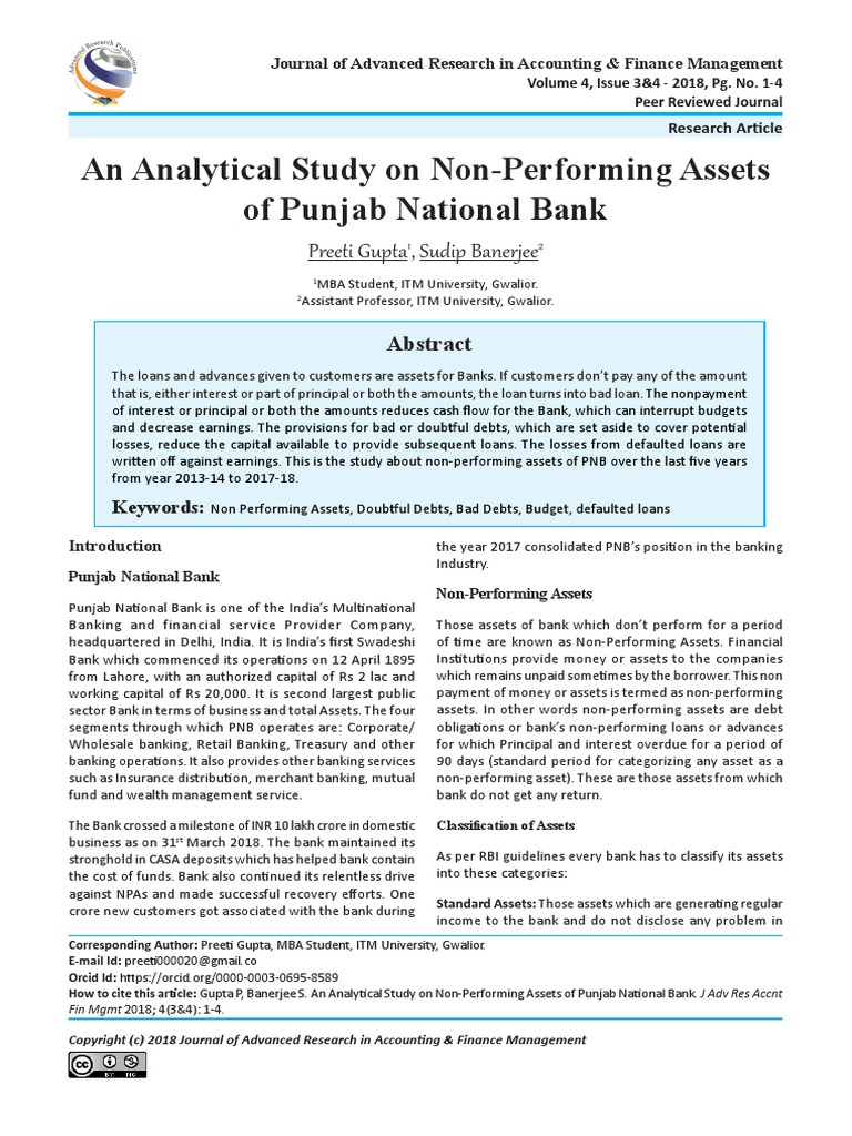 Pdf The Impact Of Non Performing Assets On Growth Of Banking