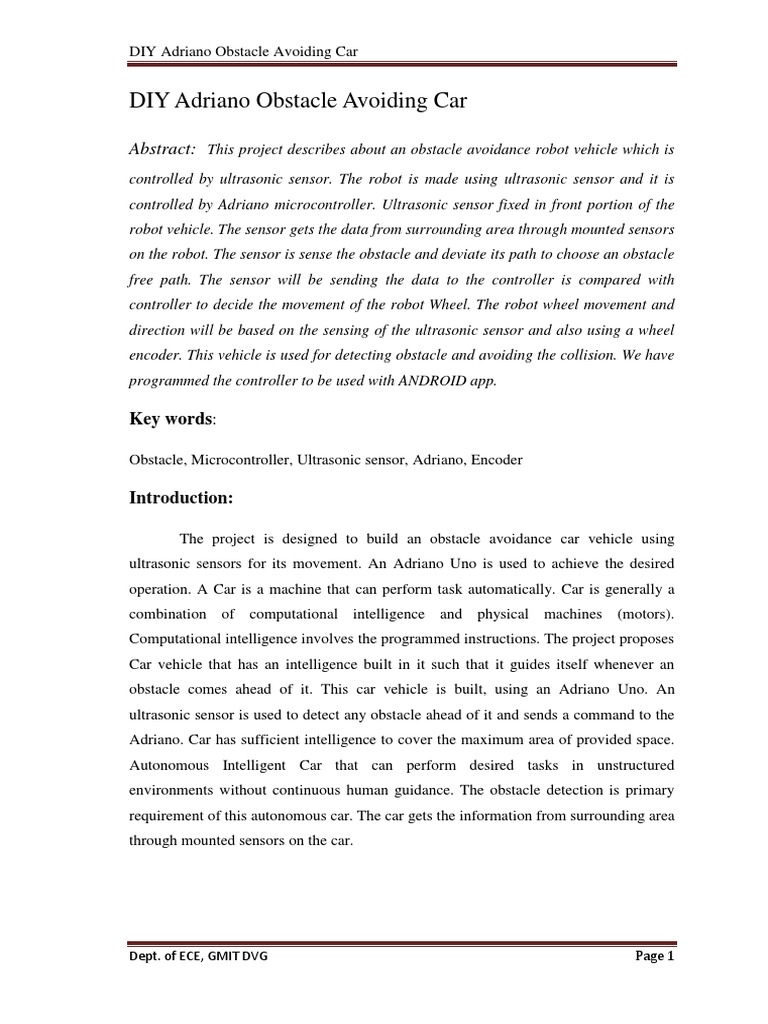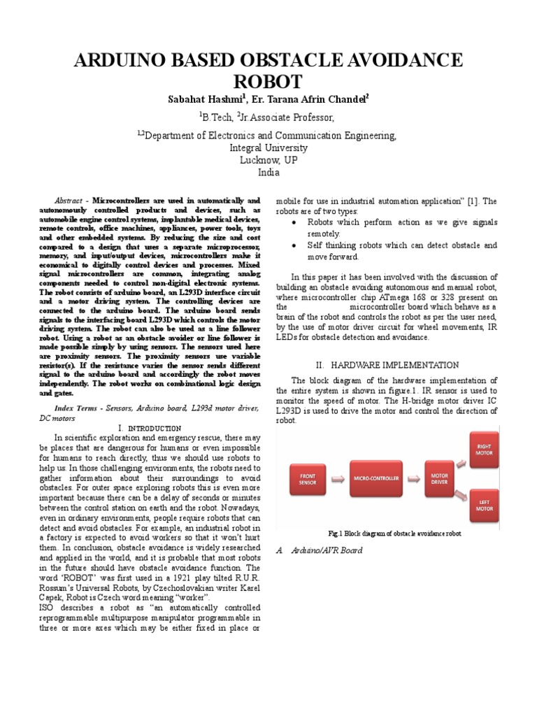 Pdf Development Of An Obstacle Avoiding Robot