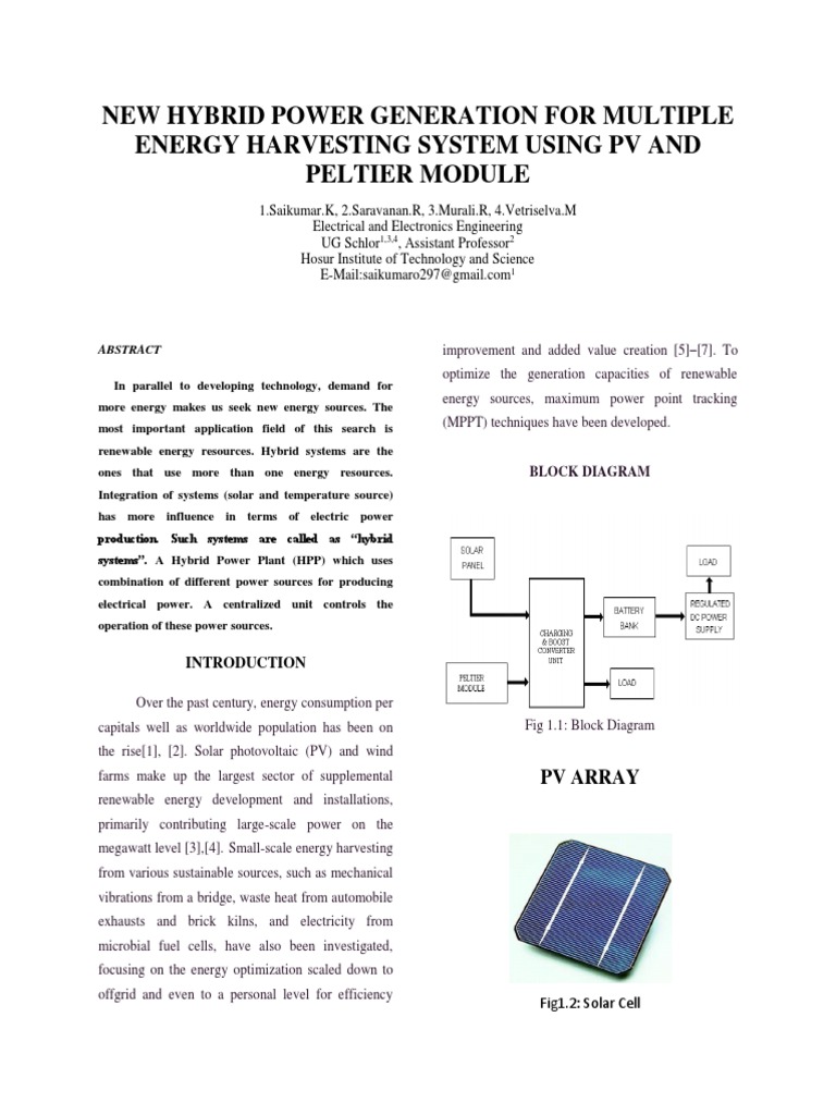 New Hybrid Power Generation For Multiple Energy Harvesting System