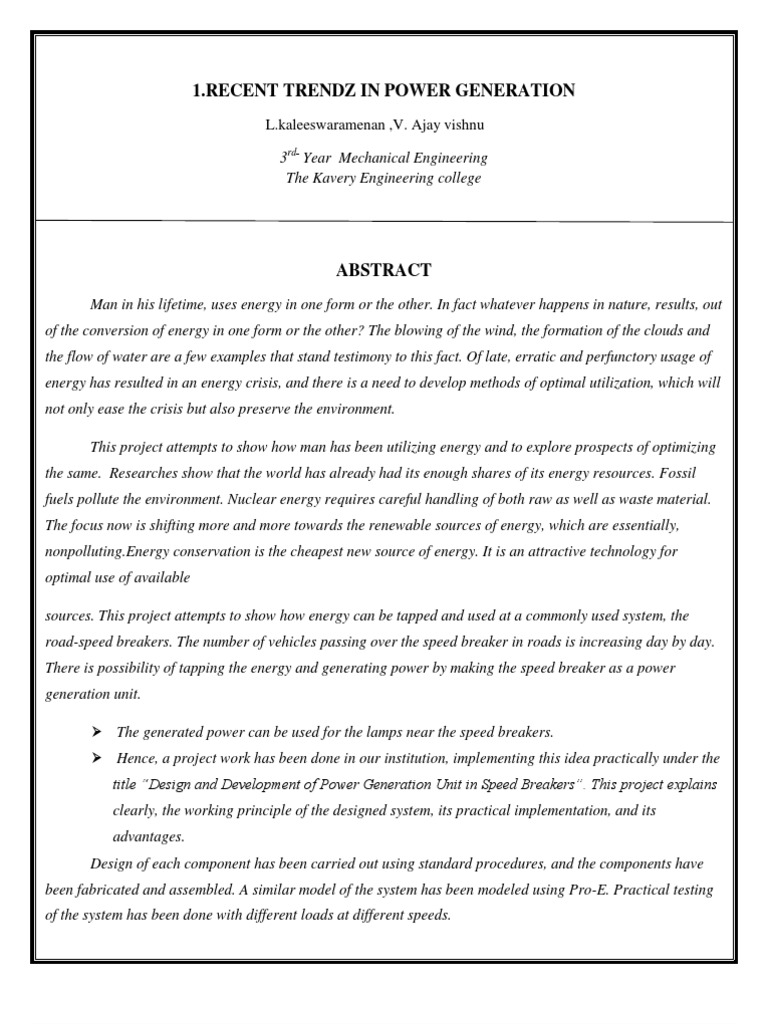 Pdf Power Generation From A Renewable Energy Source Speed