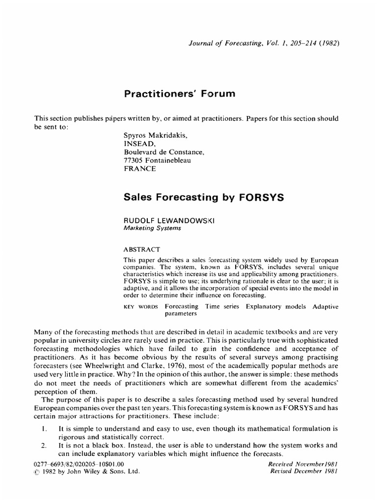 Pdf Sales Forecasting For Fashion Retailing Service Industry A