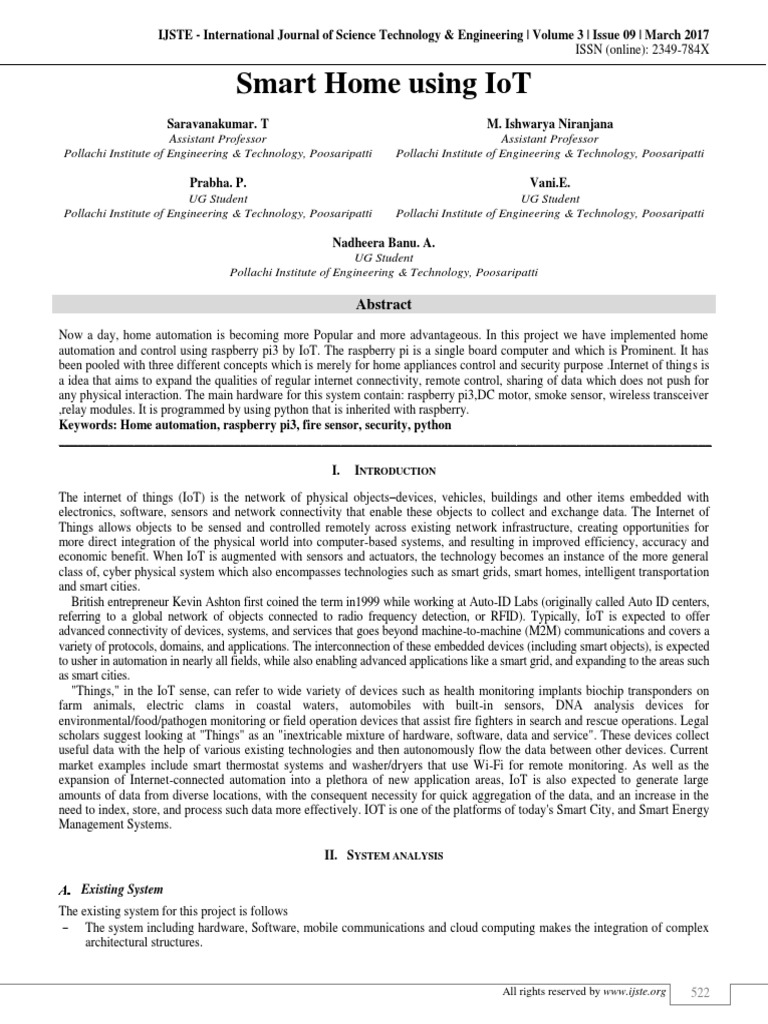 Smart Home Systems Based On Internet Of Things Intechopen