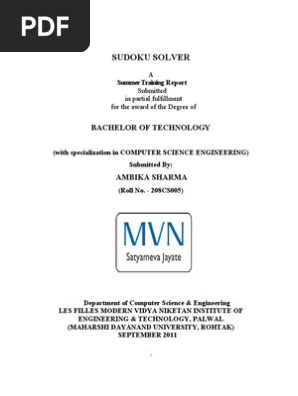 Project Report On Sudoku