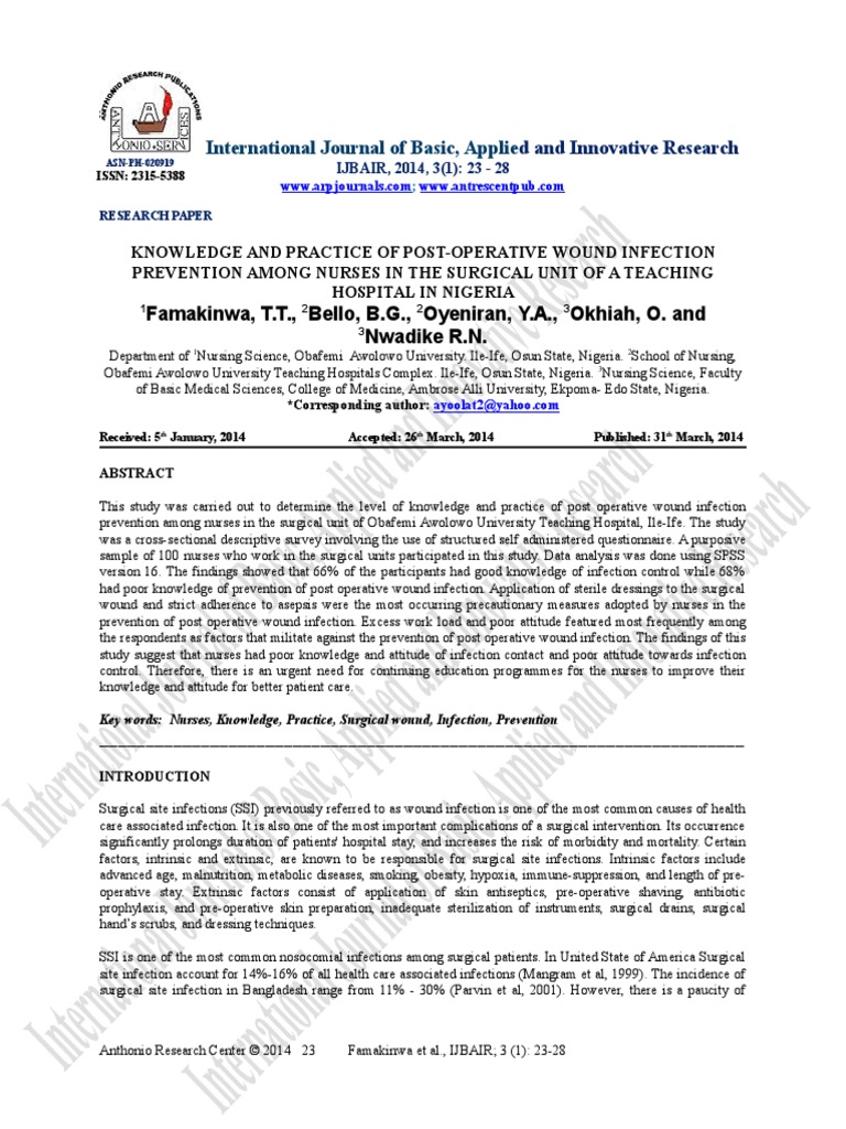 Incidence And Risk Factors For Surgical Site Infection In General