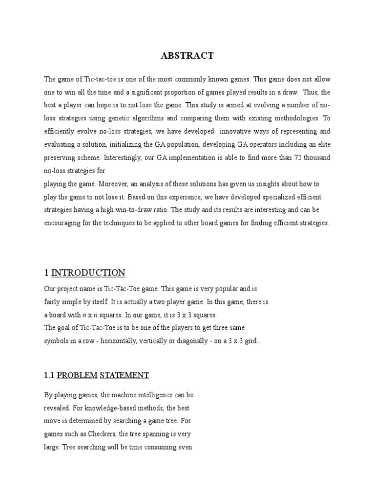 Tic Tac Toe Project Ieee Format Areas Of Computer Science