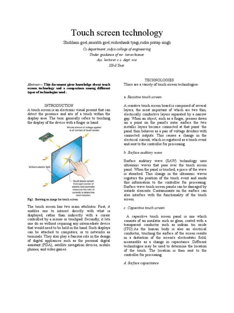Abstract For Touch Screen Technology