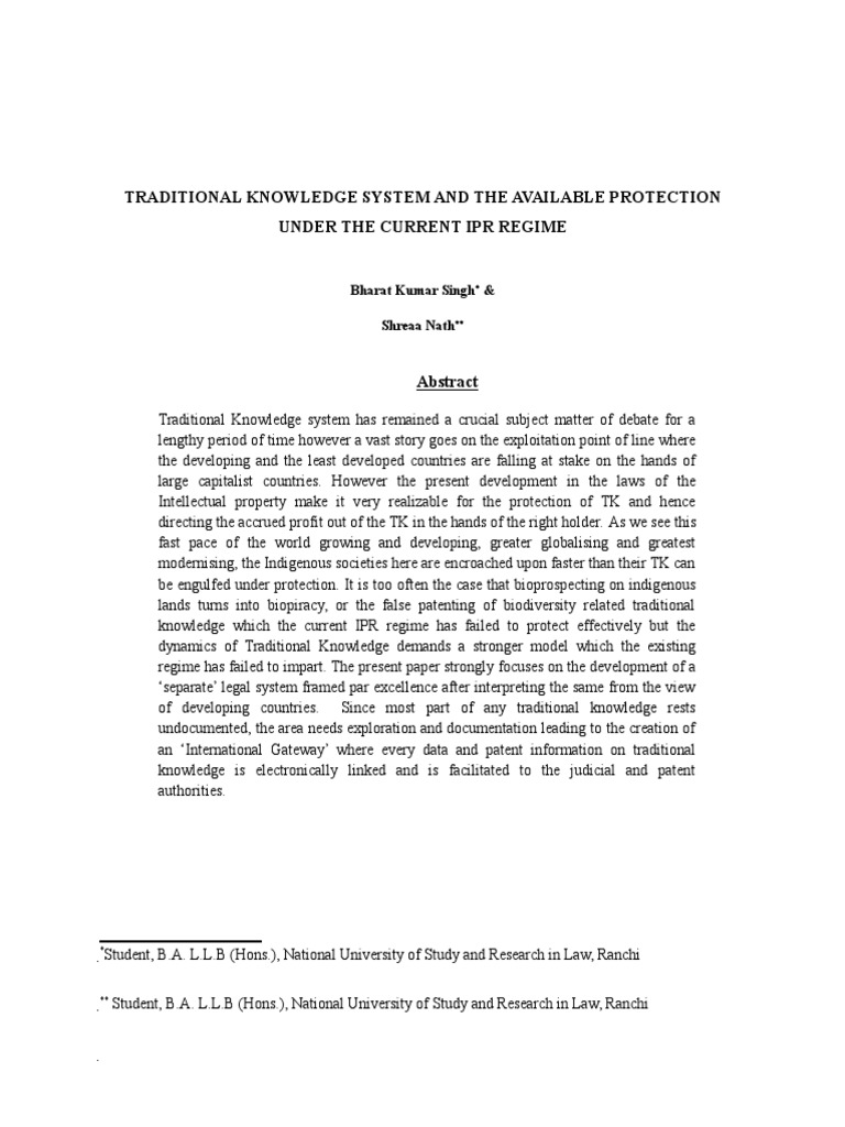Issues And Options For Traditional Knowledge Holders In Protecting