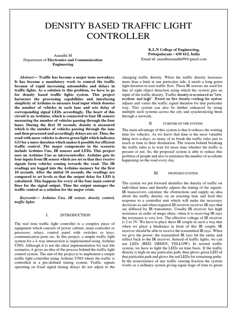 Density Based Traffic Light Controller Using Arduino Arduino