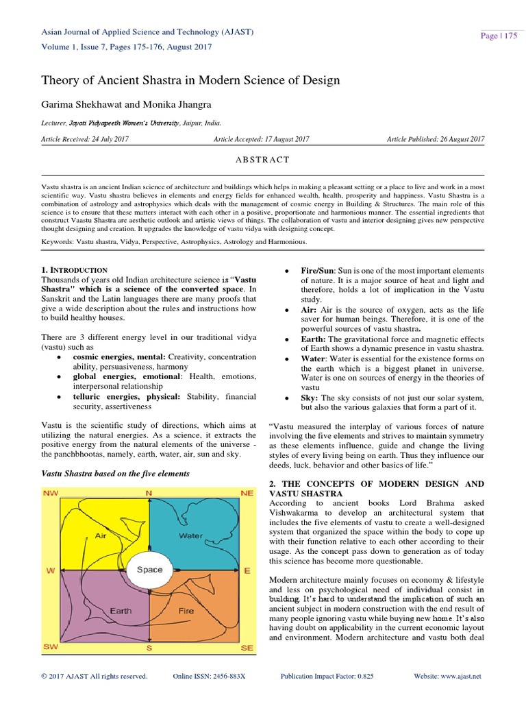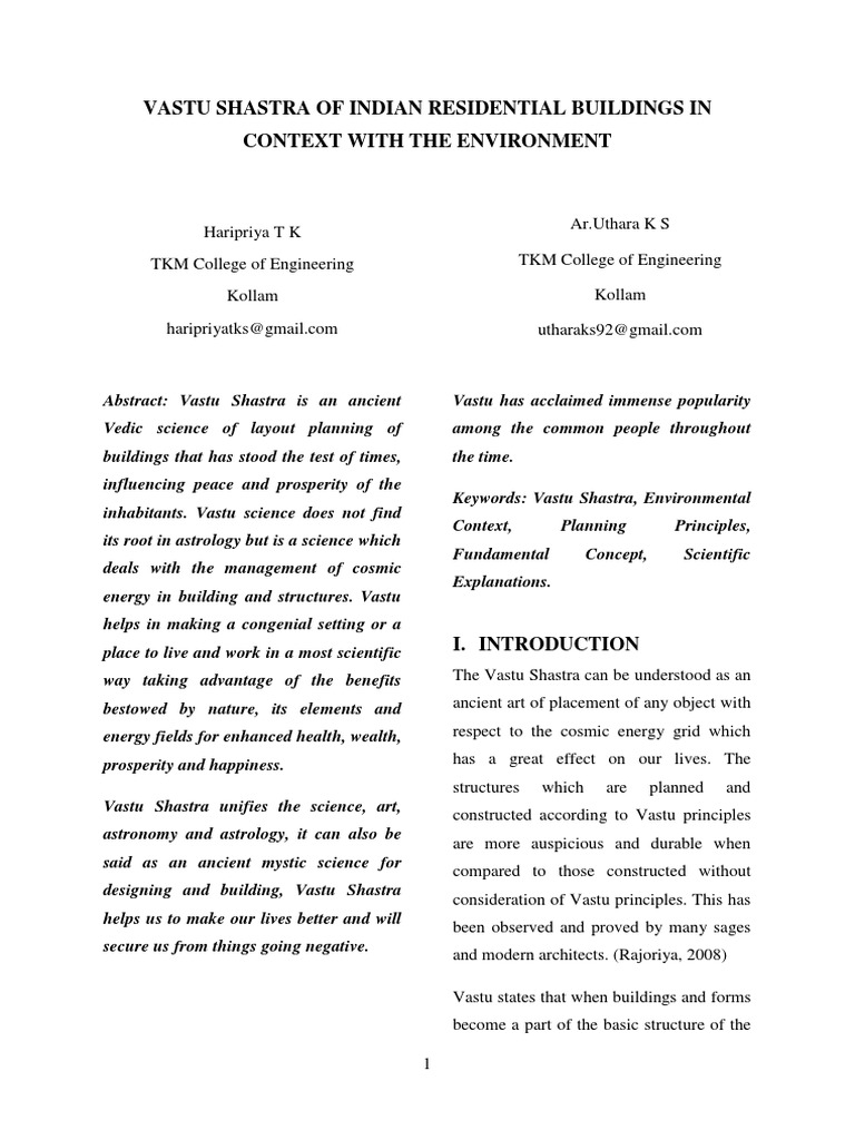 Abstract for vastu shastra. Vastu shastra is the ancient indian science of architecture which governs town planning and designing of man made structures. Earth sky fire water and air in the environment. Vastu the word denotes anything existing such as house shelter building etc. Vastu shastra vastu sastra is a traditional hindu system of architecture which literally translates to science of architecture.