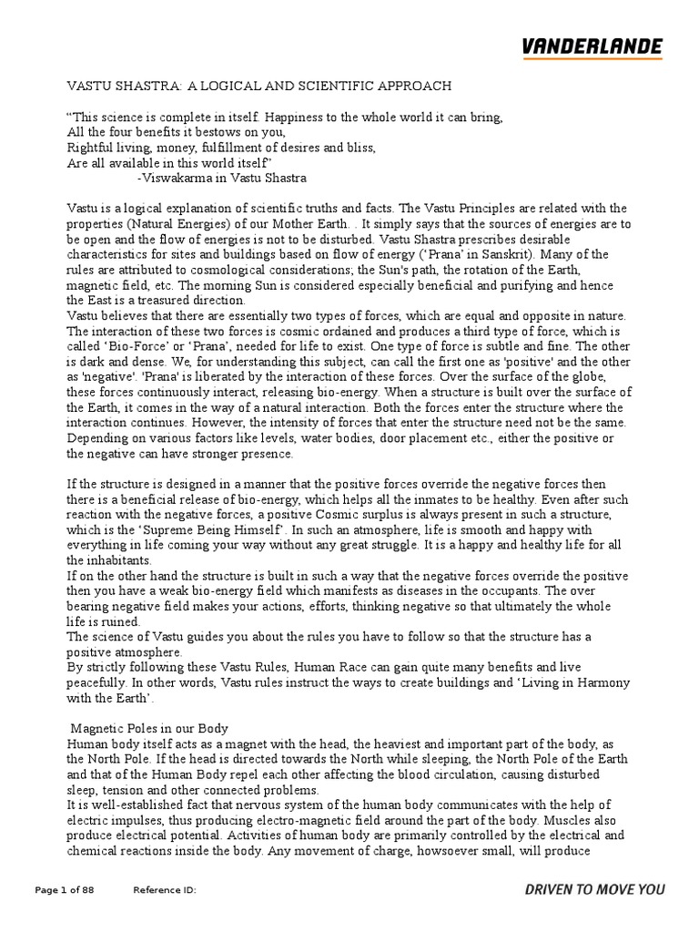Vastu shastrais the sublime elucidation of your surrounding and their influence on your life. It is the centre of your abode and is considered to be the holiest and most powerful zone of the house. Shastra in sanskrit is an ancient art and science containing certain principles and practices. The report commences with and insight into the traditional understanding of vastu with its majestic and yet unrecognized history.