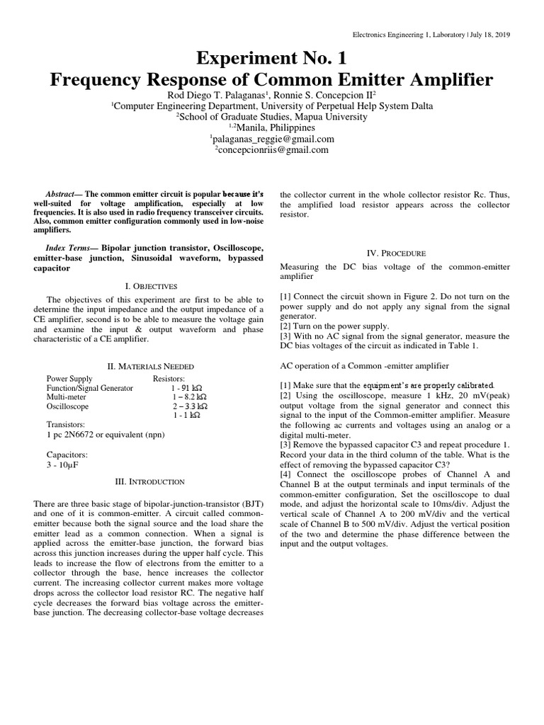 Transistor Amplifier Frequency Response Springerlink