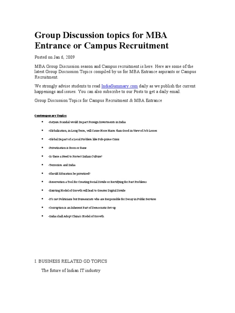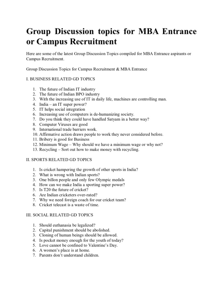 Latest 200 Group Discussion Gd Topics 2020 For Mba