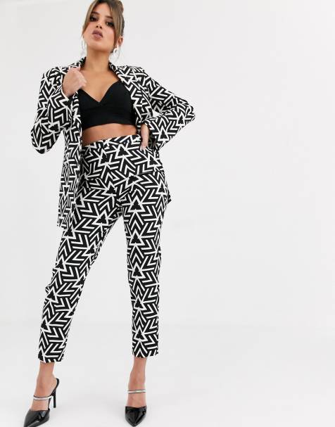Lily Black White Geo Abstract Pocket Palazzo Pants Women