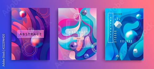 Set Abstract Geometric Gradient Background Wavy Shapes Circles
