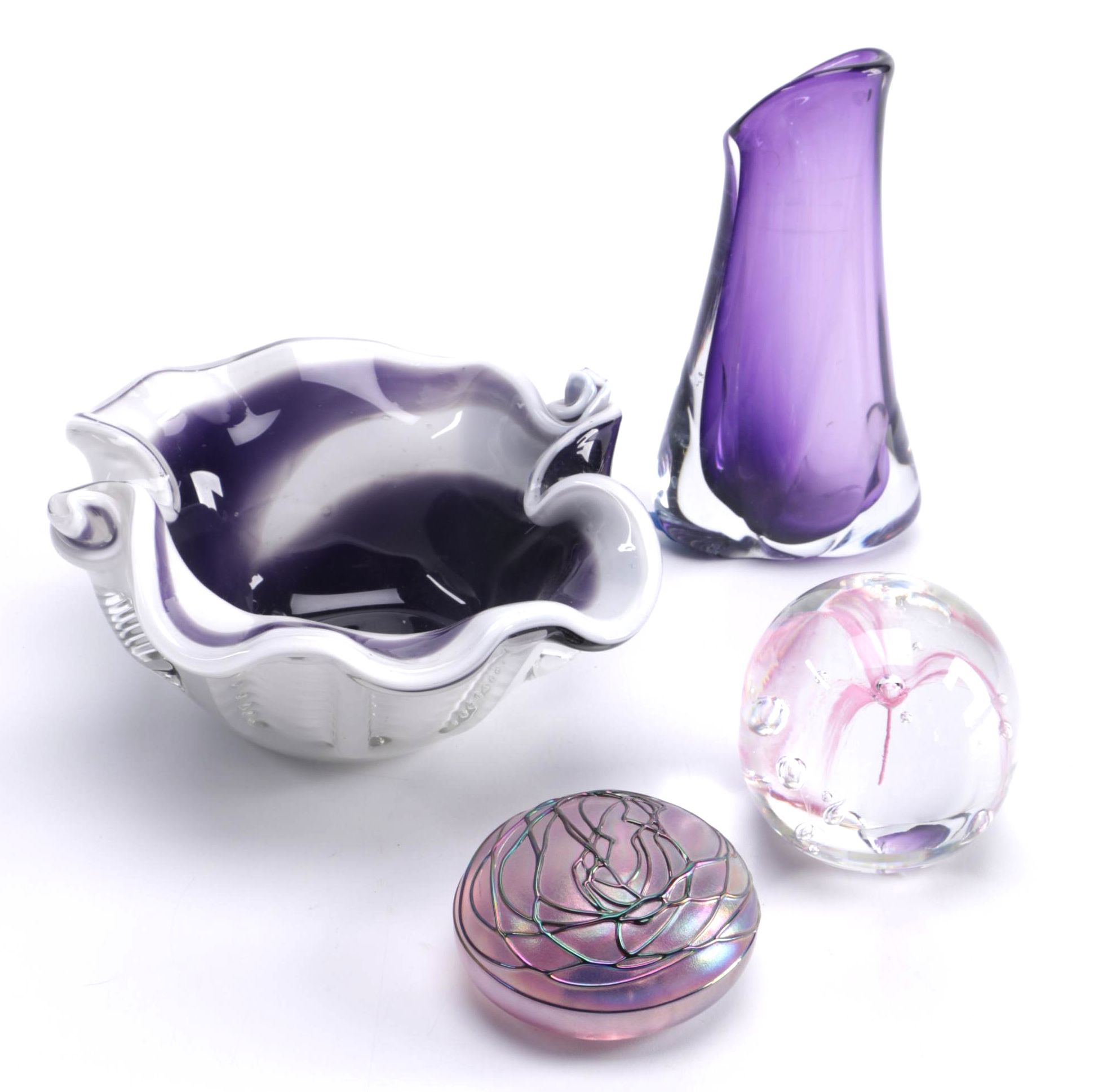 1995 Lisa R Rowe Art Glass Vase And Other Purple Glass Ebth