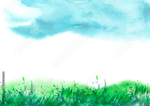 Spring Background With Green Field And Blue Sky Abstract Vector