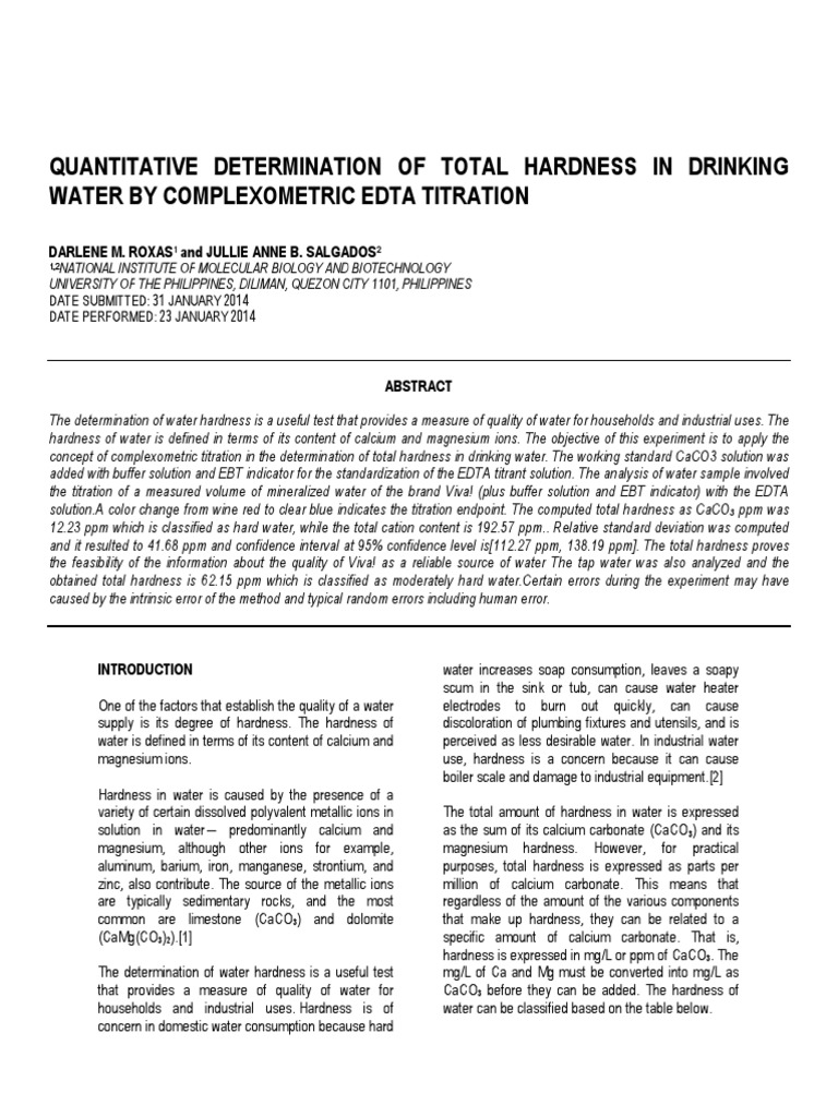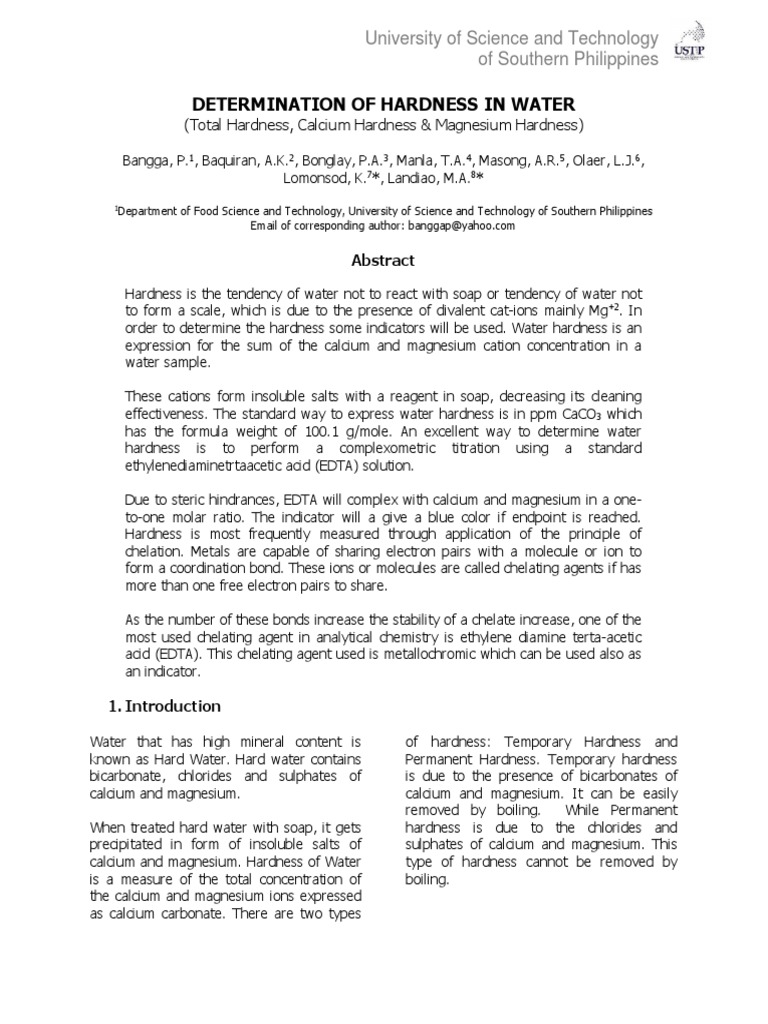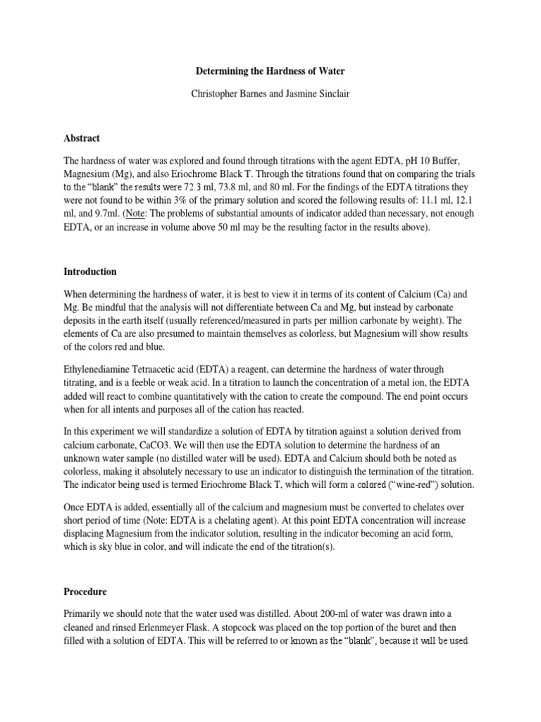 Determination Of Water Hardness Odinity