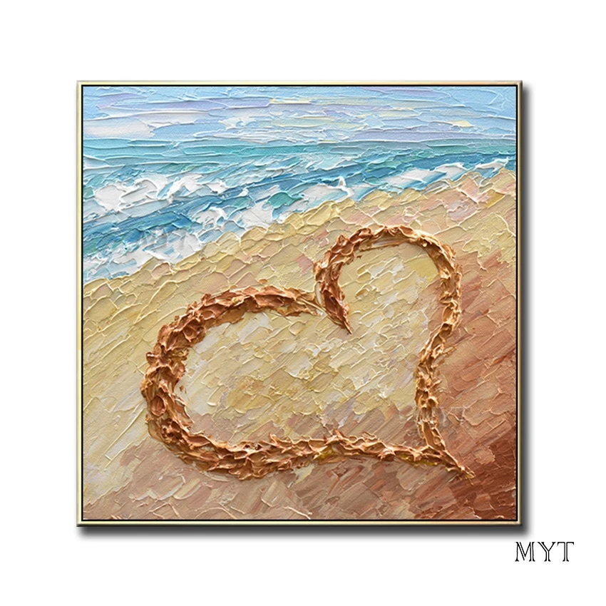 New Abstract Heart Art Oil Painting Handmade Beach Scenery Knife