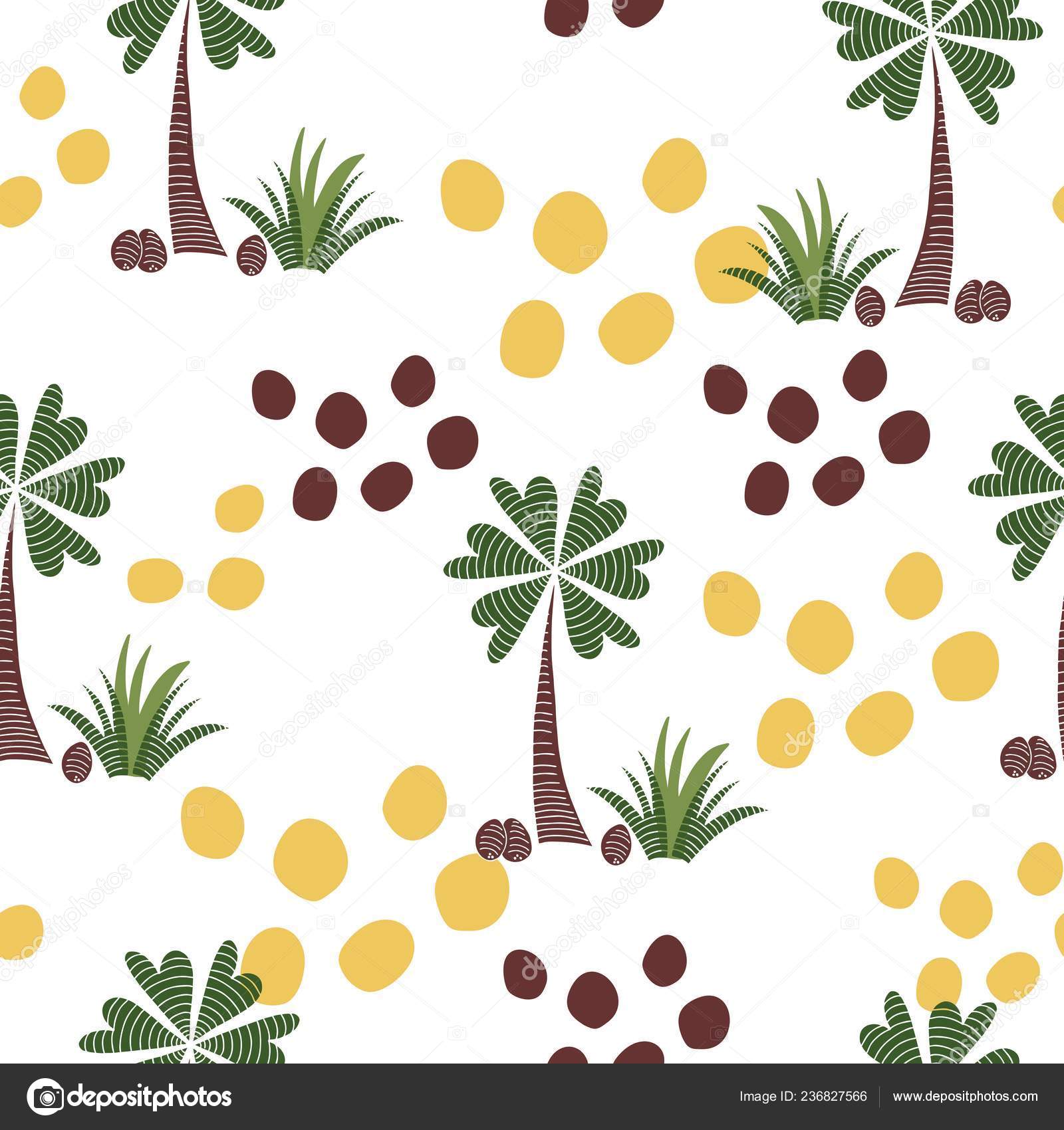 Cute Colorful Abstract Seamless Vector Pattern With Palm Tree