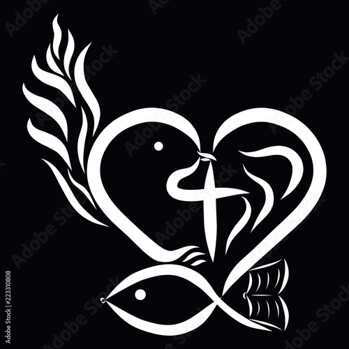 Heart With A Bird Cross Fish Book And Flame Abstract Christian