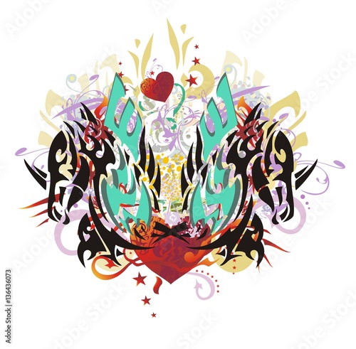 Negative Space Horse Head In Colorful Eight Sided Star Logo