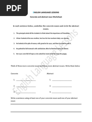 Abstract And Concrete Nouns Noun Worksheets K12reader Com