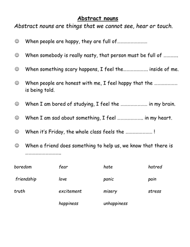 Abstract Nouns Printable Worksheets Education Com