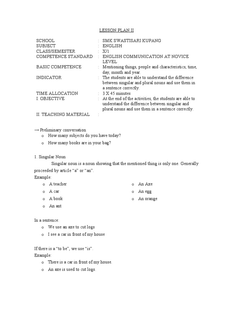 Detailed Lesson Plan For English Language Grade 6