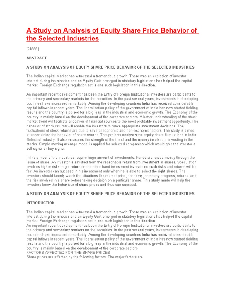 A Study On Analysis Of Equity Share Price Behavior Of The Selected
