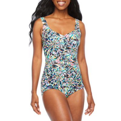 Plus Size Colorful Abstract Printed One Piece Swimsuit Plus