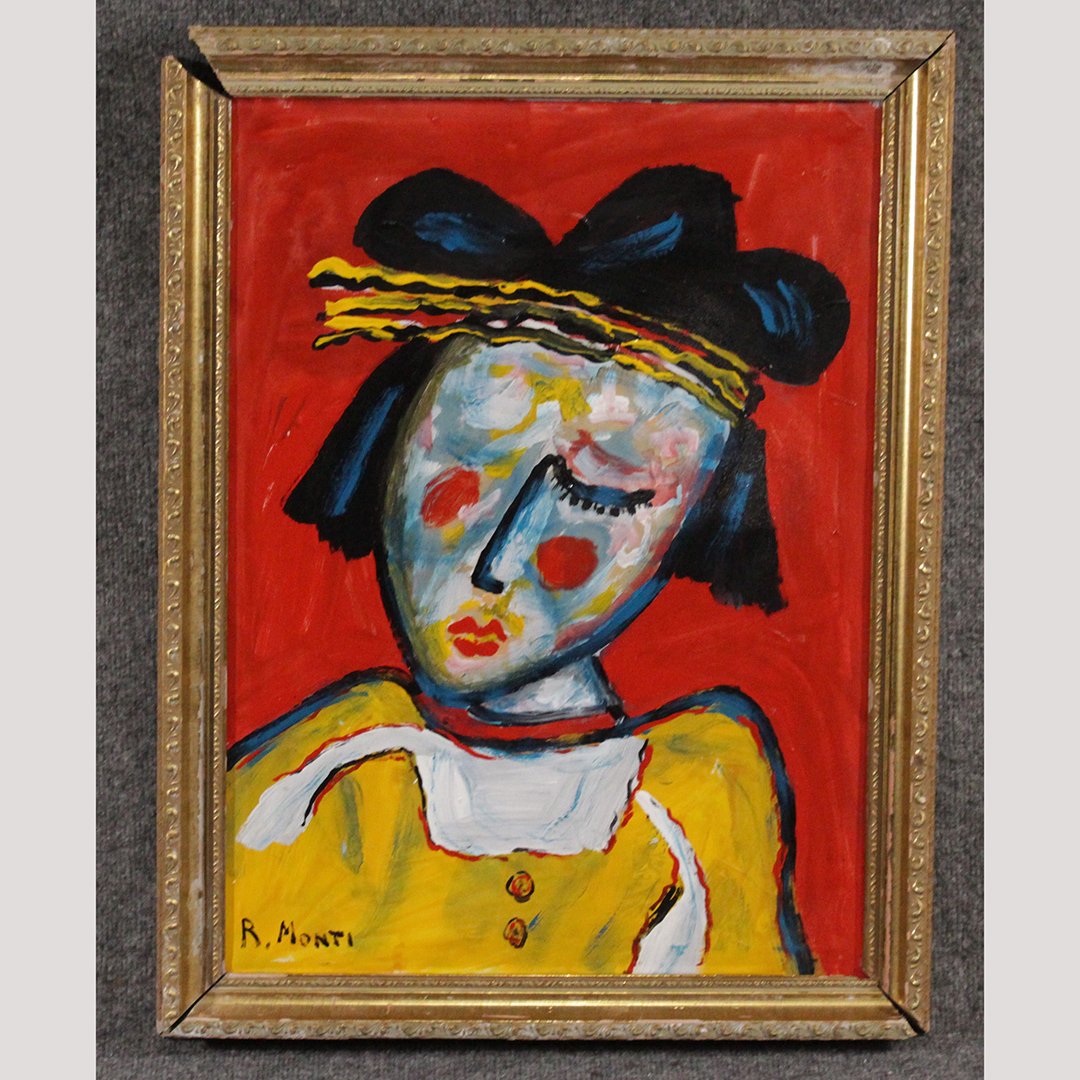 Brightly Colored Abstract Painting Of A Woman Oil On Paper For