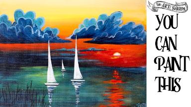 Buy Sail Boats At Sunset Acrylic Yellow Painting At Lowest Price