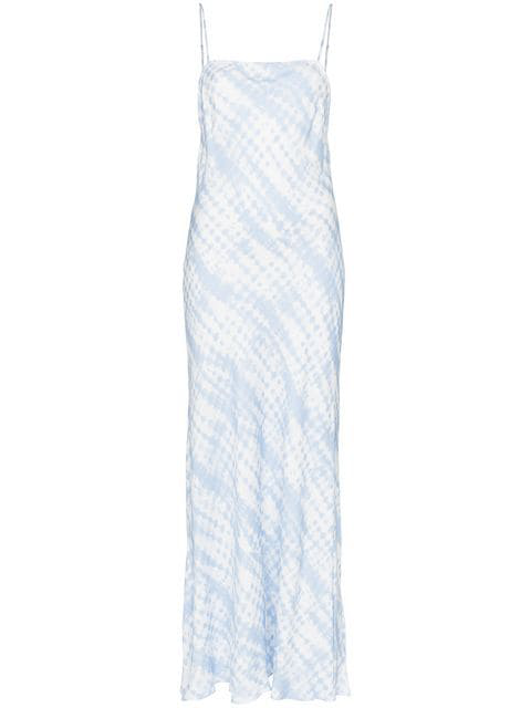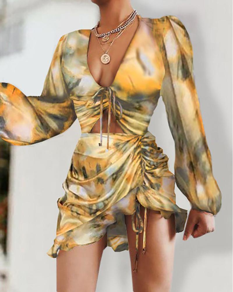 Abstract Print Spaghetti Strap High Slit Ruched Dress