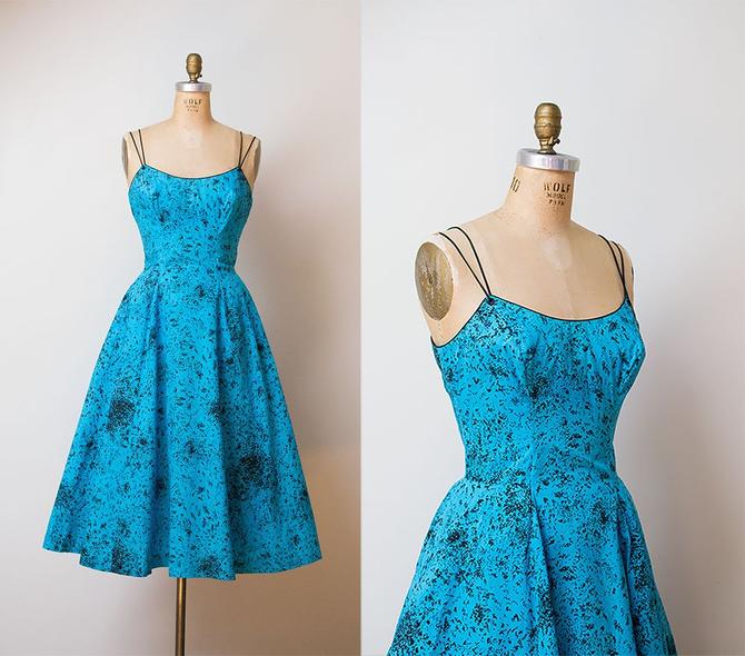 80s Abstract Floral Print Spaghetti Strap Midi Dress Working
