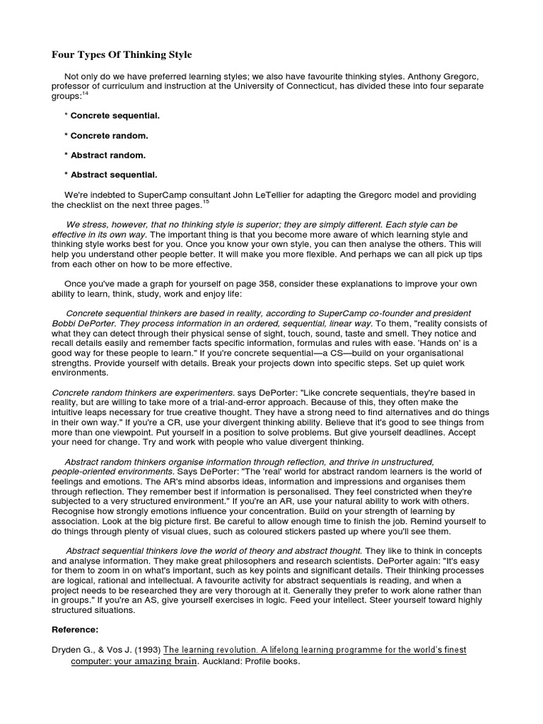 Anthony Gregorc Concrete Random Learning Style