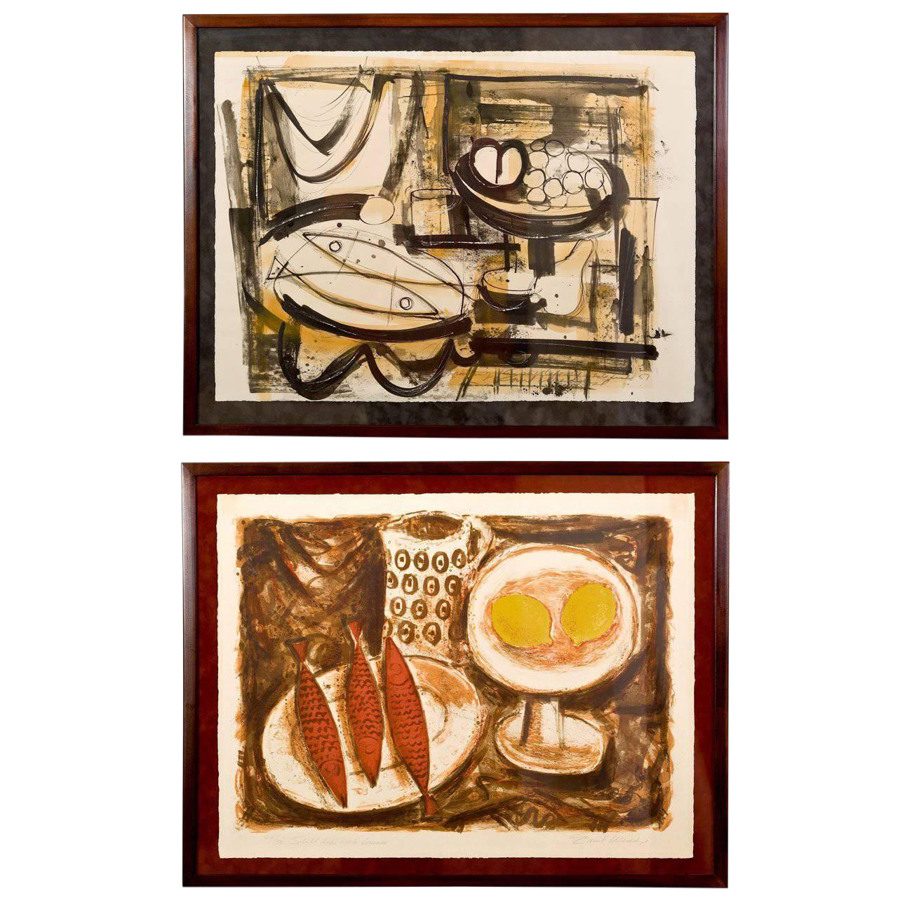 Abstract Oil Painting Of Still Life With Pitcher And Fruits Stock