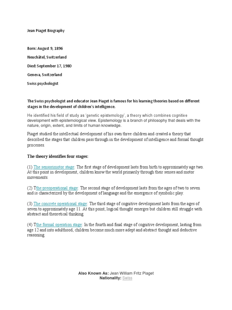 Cognitive Development Pages Jean Piaget And Cognitive Development