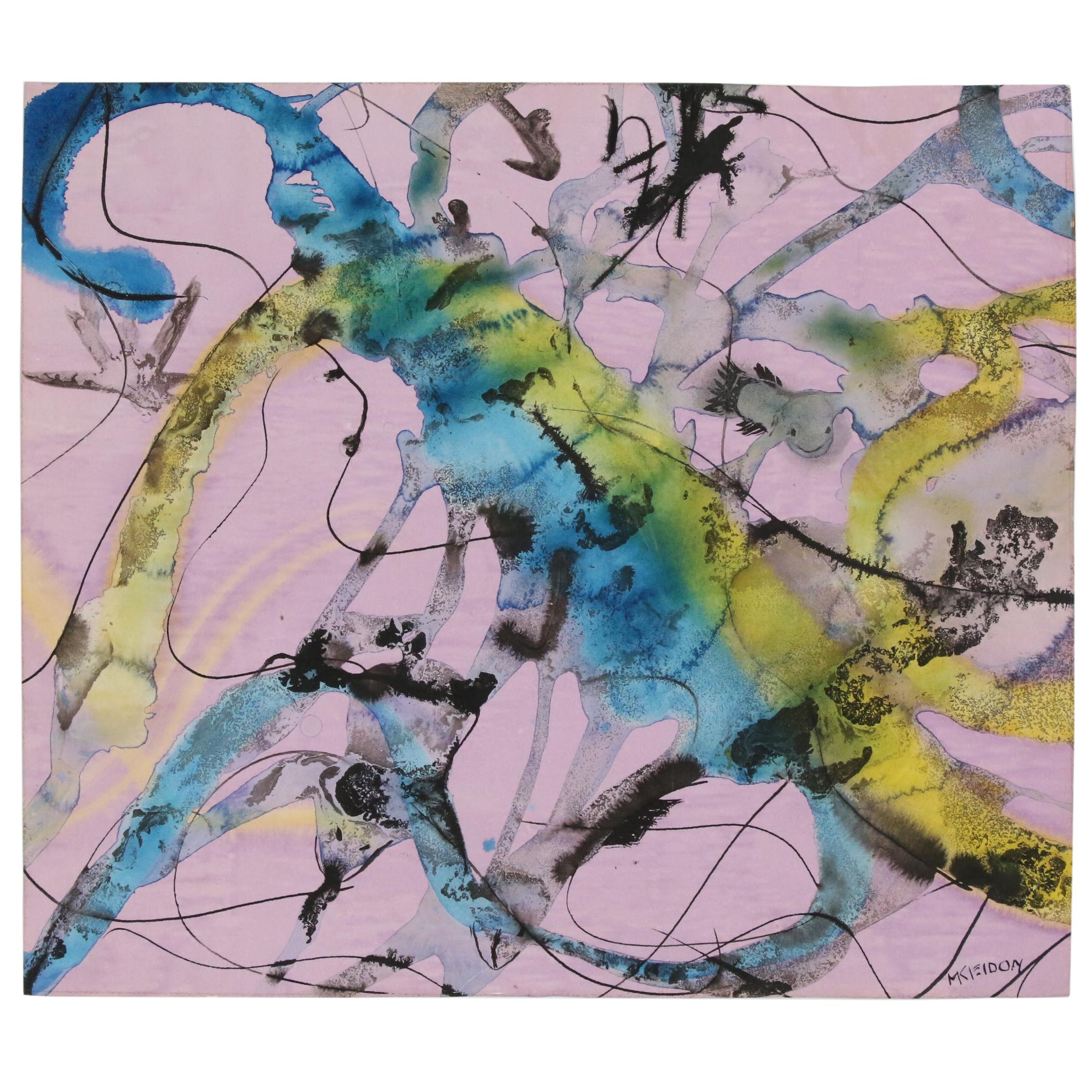 French School Abstract Watercolor And Ink Painting B7081 Bk